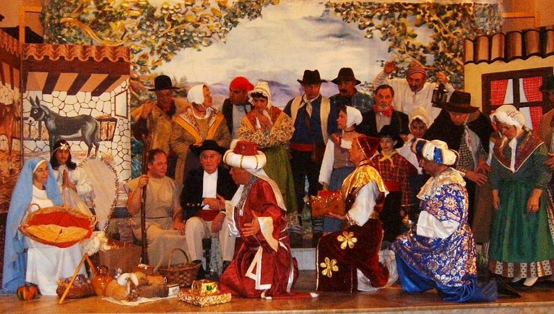 Acteurs de la pastorale Maurel à Château-Gombert vers 1920Le quatrième acte est l'adoration. Chaque personnage se présente devant l'enfant Jésus et lui offre son présent. Évidemment quelques miracles s'accomplissent. Margarido et Jourdan se réconcilient, l'aveugle retrouve la vue et le fils que le boumian lui avait volé, le boumian devient gentil et Jiget, le bégue, retrouve une élocution normale2.