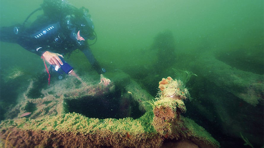 Yann Gaonac'h, historien, sur l'Atlas Ponant, carte des vestiges sous-marins
