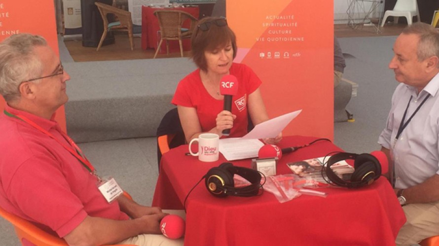 Laurent Dominici / RCF - Anne Kerléo reçoit Michel-Bernard de Vregille (à gauche) et Philippe de LachapelleRCF est partenaire de la "session pour tous" organisée à Paray-le-Monial par la communauté de l'Emmanuel et la fondation OCH (Office chrétien des personnes handicapées), du 10 au 15 juillet 2018. Ce vendredi, RCF installe ses studios au cœur de l'événement, pour sa première Escale de l'été. Au micro d'Anne Kerléo, Philippe de Lachapelle et Michel-Bernard de Vregille nous parlent de la joie d'être aimé de Dieu, une joie possible malgré l'épreuve du handicap. "Ici, il y a tout ce qu'il faut pour que le cœur se mette en disposition pour recevoir la joie, même quand le cœur - et Dieu sait s'il l'est souvent dans nos vies - est très éprouvé", confie le directeur de l'OCH.