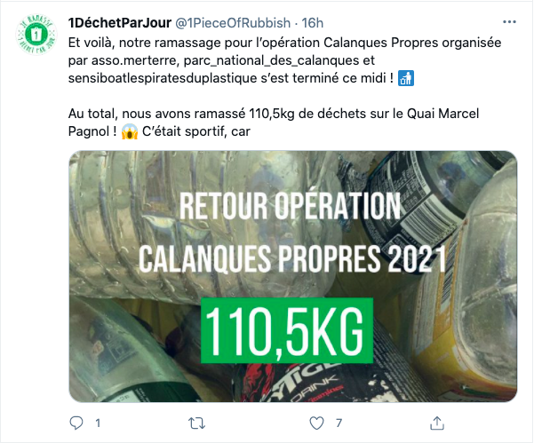 Déchets récupérés par l'association 1 Déchet Par Jour, lors de la journée Calanques Propres du samedi 5 juin 2021.