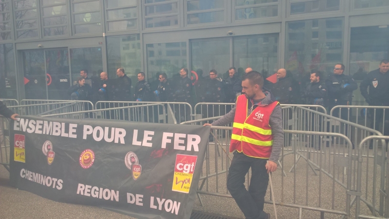 Le 4 avril, les cheminots ont terminé leur manifestation devant le siège de la Région AURA