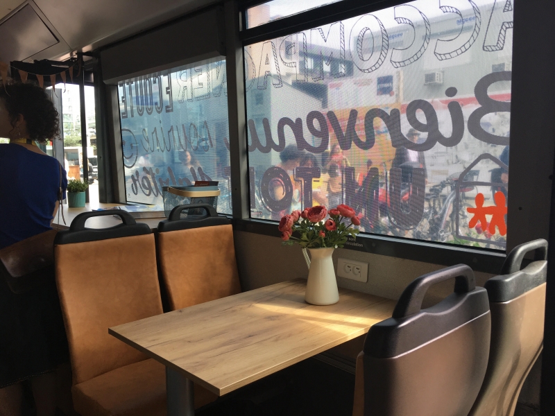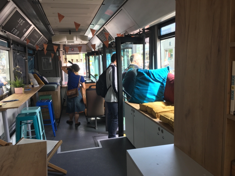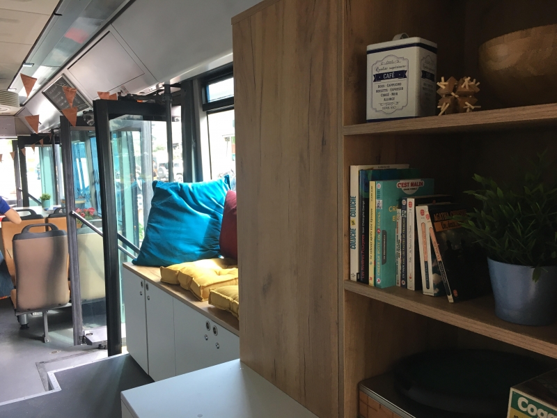 Très bien aménagé, soigneusement décoré par les ateliers d'Emmaüs, le bus est un véritable havre de paix et d'accueil pour les plus démunis, ou ceux qui souffrent de solitude. Christophe Perrin, le président de HHR, nous en fait la description :