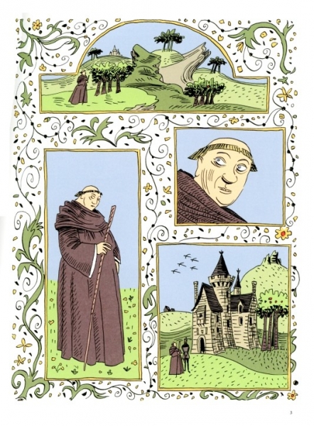 J’ai une tendresse particulière pour un moine qu’il croise à plusieurs reprises qui est en quête de croisades puis qui devient dominicain tout en ayant une fâcheuse tendance à être un chapardeur. J’ai adoré deux choses dans cet BD d’une part le dessin, moderne mais très inspiré par l’art du moyen âge. Pour peux qu’on connaisse un peu les miniatures médiévales ou les tableaux de Brueghel on peut s’amuser à retrouver les références du dessinateur Daniel Casanave.