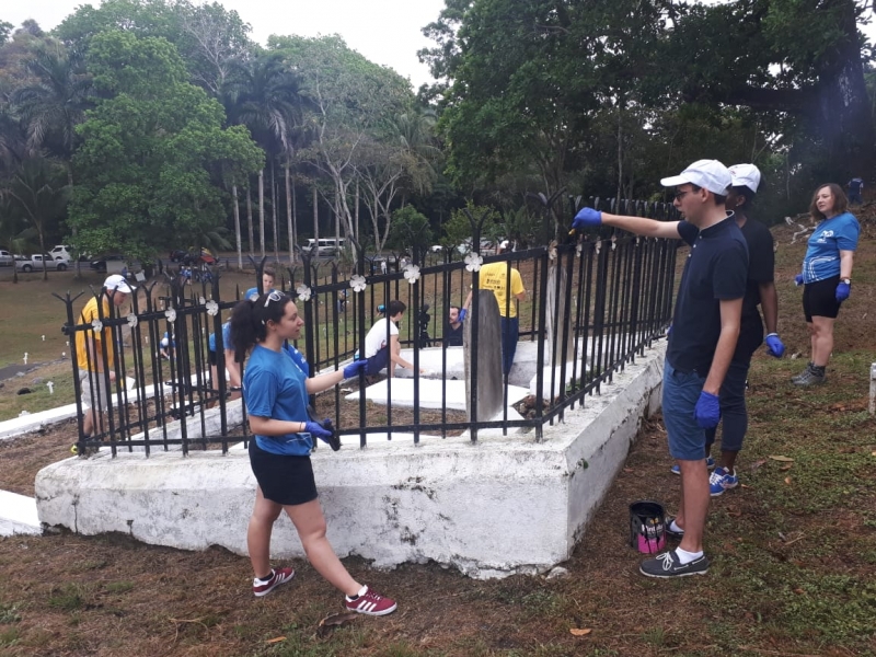 40 jeunes de la délégation de l’enseignement catholique se sont rendus au cimetière français de Panama pour participer à un chantier de réfection des croix du cimetière. C’est là que reposent, symboliquement, près de 1800 Français morts durant la construction du canal. Les jeunes avaient à cœur d’honorer leur mémoire.