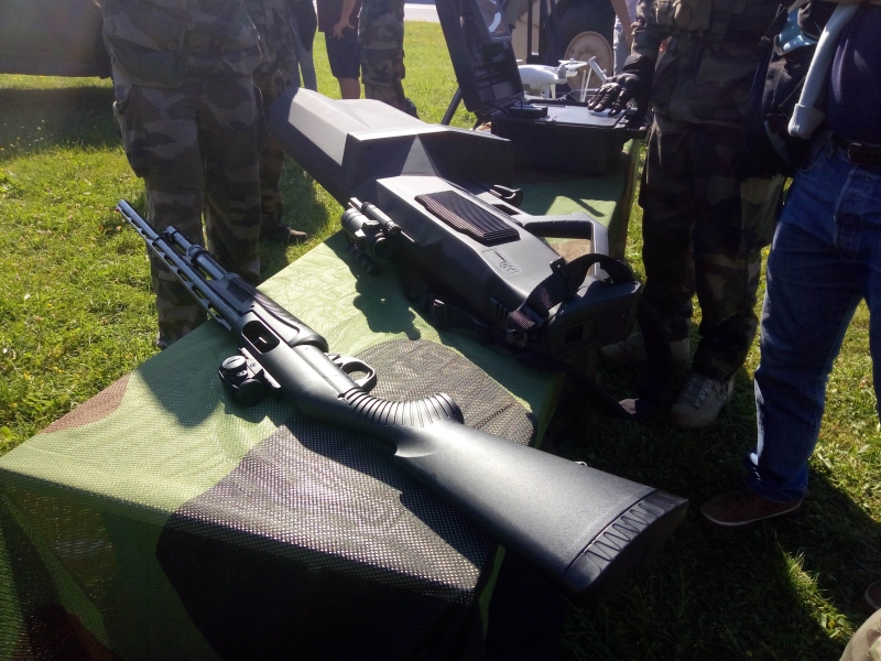 RCF - Le fusil à pompe Benelli (au premier plan) permet de neutraliser les drones. Ils peuvent également être brouillés grâce au fusil brouilleur Nérod. (à la droite du Benelli).