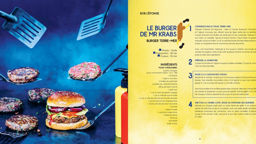 Comme c’est encore le matin je vous propose la version de Thibaud Villanova de la fameuse Bieraubeurre, la boisson préférée d’Harry Potter et des élèves de Poudlard. C’est la version pour enfant donc sans alcool. Pour 4 verres il faut 1 litre de jus de pomme bio, un baton de canelle, 5 g de gingembre frais. Il faut d’abord faire chauffer tous les ingrédients dans une casserole avant de laisser infuser les épices et de faire reposer le mélange au frais. Il propose ensuite de faire un caramel au beure salée. Puis de filtrer le jus de pomme de le servir dans des belles choppes et de le recouvrir de chantilly et de caramel. J’adore cette recette qui a un bon gout d’automne mais qui ne dépareillera pas cet été si vous la servez très très fraiche. Côté boisson Gastrogeek propose aussi la potion de bouclier de Fornite et côté plat les œufs de Monsieur Tumnus des chroniques de Narnia ou la Mickey Pizza Pop des tortues Ninja. Ce livre est un formidable moyen d’intéresser les enfants à partir de 8/10 ans à la cuisine de façon fun et sympa.
