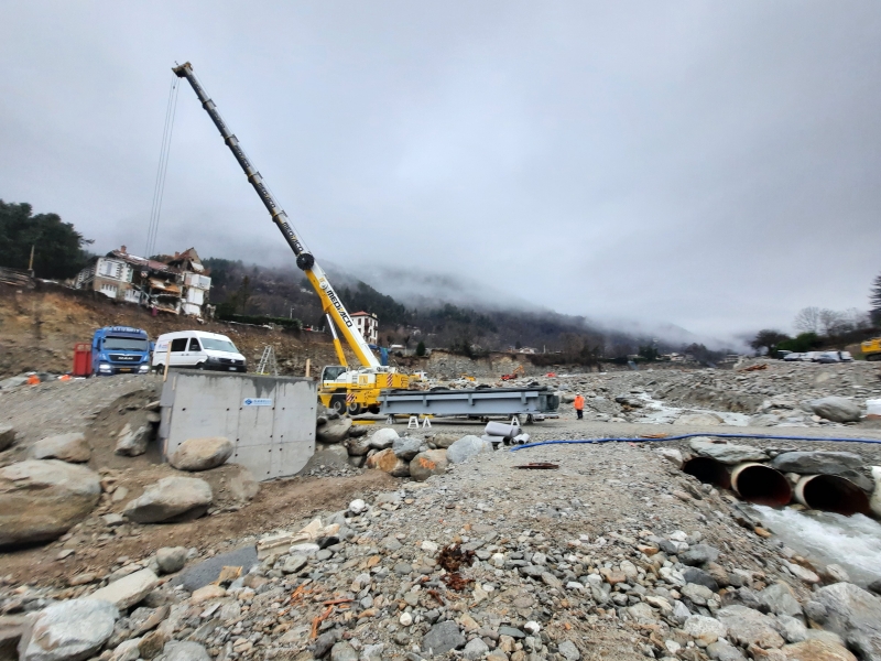 Le pont de Venanson va être installé en trois jours - Photo: S. C-G. Un pont, même provisoire, c'est un soulagement pour les habitants de Saint Martin Vésubie. C'est surtout le lien avec l'extérieur qui permet d'avancer, de se relever, de profiter de la solidarité. Ce mardi 15 décembre, la métropole Nice Côte d'Azur facilite les accès d'une rive à l'autre du Boréon.