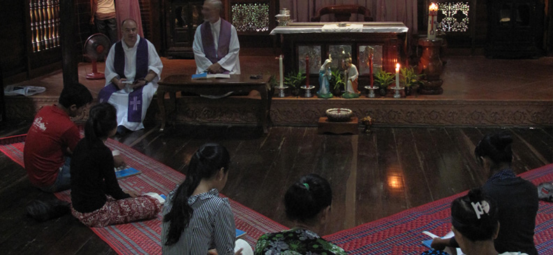 "Il est important de respecter le sentiment religieux des Cambodgiens à travers les célébrations que propose l'Église catholique." Pour le P. Gérald Vogin, comme pour tous les prêtres des MEP, il convient d'apporter dans les pays lointains où le missionnaire est envoyé, non pas sa culture, mais sa foi. Apporter le Christ. "Le Christ ne saurait heurter la culture des gens." L'inculturation, au coeur des préoccupations des missionnaires, c'est faire qu'en devenant chrétiennes, les populations ne se sentent pas pour autant déracinées.