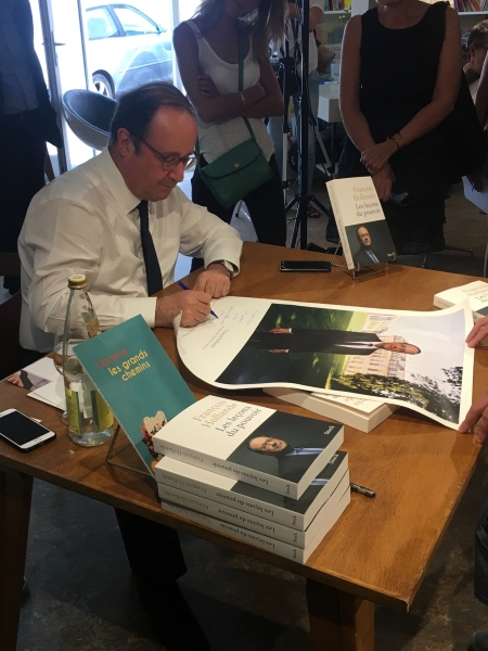 Deux heures après l'arrivée du président tant attendu, la librairie les Grands Chemins ne désemplie pas. La séance de dédicace s'est officiellement terminée à 20h30. L'ancien chef d’État a ensuite convié ses derniers lecteurs à le rejoindre quelques mètres plus loin à l'Espace Victor Hugo. Ces séances de dédicace sont avant tout « des moments privilégiés d'échange avec les Français » pour le président socialiste qui souhaite se laisser du temps avant de revenir sur la scène politique. Pour la propriétaire de la librairie, l'intérêt est tout autre : elle a estimé vendre plus de 250 exemplaires des leçons du pouvoir à l'occasion de cet événement inédit pour la sous-préfecture calvadosienne.