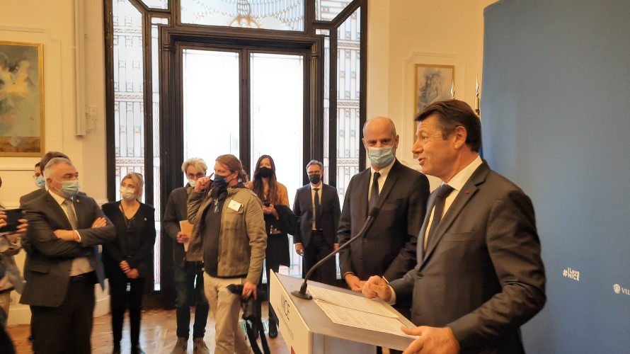 Christian Estrosi en mairie de Nice ce 5 novembre 2021 - Photo RCF"J'annonce publiquement que la métropole et la ville de Nice doubleront la mise". Christian Estrosi fait le relais du plan Contrat d’Engagement Jeune du Gouvernement et le renforce. "Nous ne devons pas laisser un jeune sans emploi" explique le maire ce 5 novembre devant le ministre de l'Education, Jean-Michel Blanquer.
