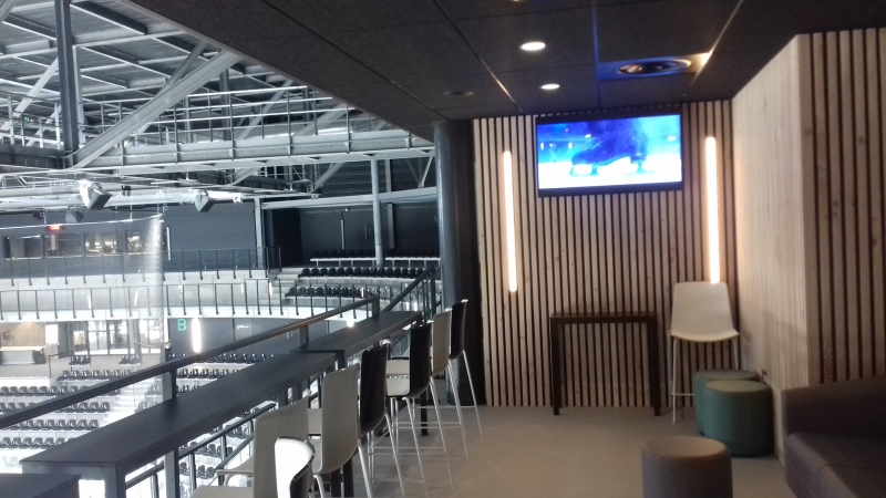 Au rez-de-chaussée, 600 m² sont réservés aux Ducs d’Angers. Le club de hockey y aura ses bureaux, sa salle de musculation et même de cryothérapie, ainsi que ses vestiaires. Les sportifs auront leur propre entrée, côté piste olympique, séparée de celle du grand public, près de la piste ludique. Au-rez-de-chaussée, on trouve aussi un restaurant de 40 places ouvert sur l’extérieur. On pourra donc y aller sans venir patiner.