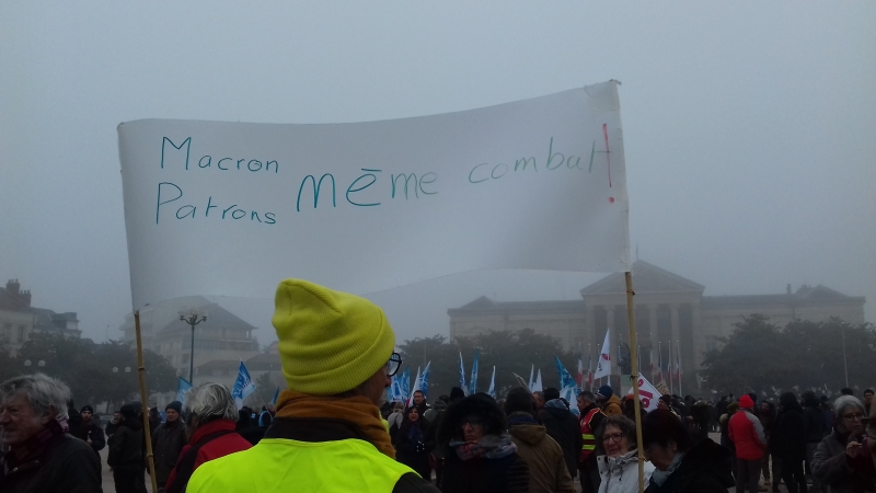 Dans les cortèges, un grand nombre d’enseignants, de cheminots, de fonctionnaires mais également des avocats, des infirmières et des salariés du privé, ainsi que des gilets jaunes, des retraités et des chômeurs.