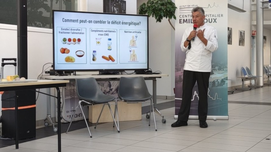 Pour cette journée mondiale des soins palliatifs, le CHER a fait appel à Régis Marcon pour parler de l'importance de la nourriture dans les soins. ©RCF Haute-LoireLe 10 octobre est la Journée mondiale des soins palliatifs. L’occasion pour les soignants de mettre en avant la culture palliative. Cette année, les équipes du CHER ont choisi de promouvoir l’alimentation. Même gravement malade, la nourriture joue toujours un rôle important. En effet, selon l’équipe de l’hôpital ponot, bien manger « participe à maintenir de la masse musculaire ». Une masse nécessaire pour supporter les traitements lourds.