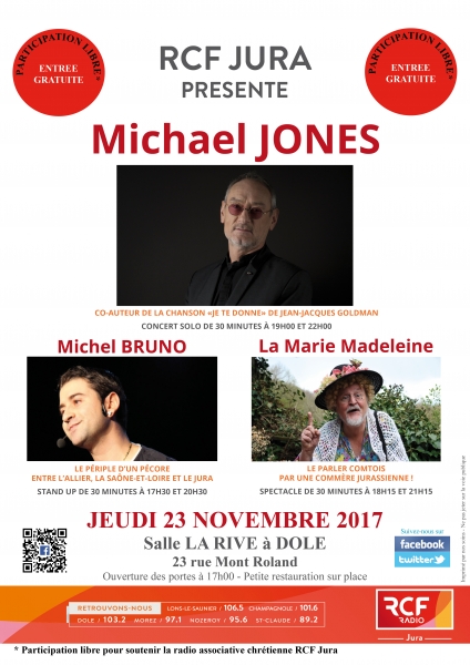 Spectacle de soutien à RCF Jura le jeudi 23 novembre 2017 à partir de 17h30