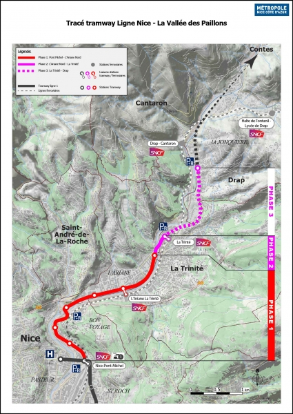 Les rails vont donc se dévoiler sur les axes niçois entre Pont-Michel, l’Ariane puis direction La Trinité et Drap. Longueur totale : 6 km, dont 1,5km en souterrain pour la bagatelle de 340 millions d'euros. Tout le long du parcours, le raffraichissement des rues et la création de 3 parcs relais. Fréquence prévue : un tramway toutes les 8 minutes dans chaque sens de circulation.