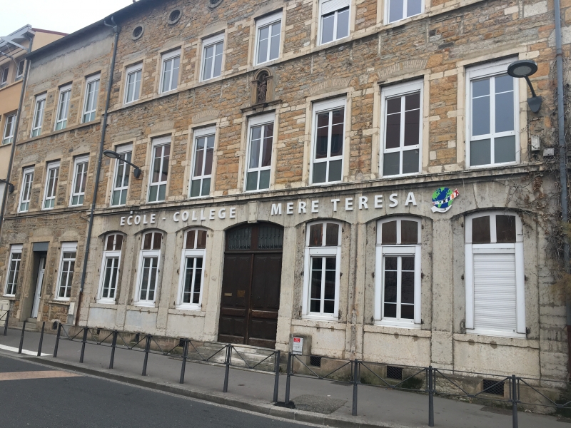 2016 RCF - "Je suis, je vais, les premiers verbes conjugués pour ces jeunes élèves allophones"L'établissement privé catholique Mère Teresa accueille des élèves de la maternelle au collège. Située à Villeurbanne, ville cosmopolite de l'agglomération lyonnaise, cette école est la seule du diocèse a accueillir des enfants allophones, c'est-à-dire des enfants ne parlant pas français.