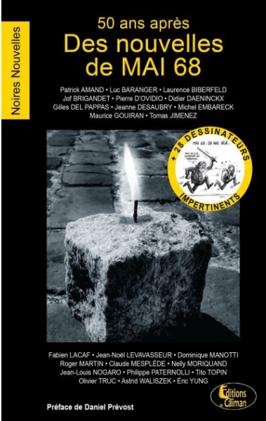 Mai 68 est une période durant laquelle s’est déroulée une série d’événements… etc. etc. Grèves générales, occupations d’usines, révolte de la jeunesse étudiante, De Gaulle vacille, conquêtes sociales, avènement d’une nouvelle société, jouir sans entrave… 50 ans après, presque tout a été dit. Dans le flot des commémorations, les Éditions du Caïman offrent une carte blanche à des auteurs très divers afin qu’ils vous racontent un mai 68, vécu ou non. Voici donc « Des nouvelles de Mai 68 » où se mêlent témoignages, fictions, humour, anecdotes, histoires vécues ou imaginaires, souvenirs romancés ou transgressés. Vous pensiez tout savoir sur Mai 68 ? Vous réviserez votre jugement en découvrant sœur Emiliana et les Katangais, le débrayage de Jocelyne, les amants de mai, Mika Etchebéhère, la garde-robe de l’Odéon, tonton Marcel, la Simca 1501 de la Banque de France, des CRS et du LSD, Claude - délégué CGT d’Orly Nord, le lycée de Chantilly, les colères de Roger, Mariette l’étudiante de la Sorbonne, la Coupe Davis 1968, Marie et Daniel sur la route, les souvenirs de Pierre, le commando Camembert, l’abeille de mai , le footballeur de l’ASSE Rachid Mekhloufi, le tableau Meurtres 10/2 1968, Marie-Lise et sa sœur Jackie, la Fiat-Abarth miniature, Bettenfeld le flic rescapé du Vel d’Hiv… et que dire du fameux « Mémé », hier agitateur lycéen dans le Jura, aujourd’hui homme politique bien connu, cerise sur le gâteau d’anniversaire !