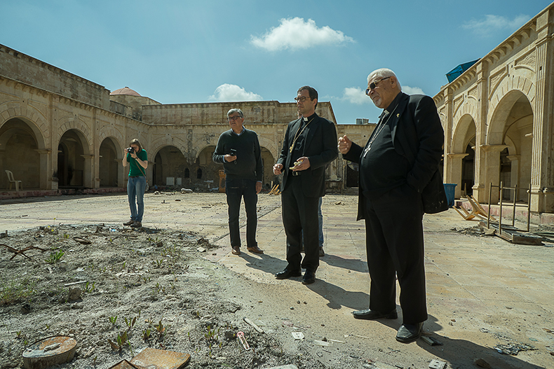 Parmi les premiers à revenir à Qaraqosh, Mgr Petros Mouche, évêque syriaque catholique de Mossoul et Qaraqosh. L'un des premiers aussi à entrer dans sa cathédrale noire de suie. Il se souvient s'être arrêté, par terre devant la porte. "Il y avait une certaine joie dans mon cœur mélangée avec des larmes." La joie de retrouver son église mêlée à la désolation de la trouver dans cet état. En réalité, on n'a pratiquement aucune information sur ce qui s'est passé à Qaraqosh pendant les deux années d'occupation par Daech. Les maisons et les boutiques brûlées et pillées, les églises saccagées, le chaos dans les rues en disent long. Qaraqosh était "une ville à reconstruire pratiquement intégralement", explique Pascal Maguesyan.