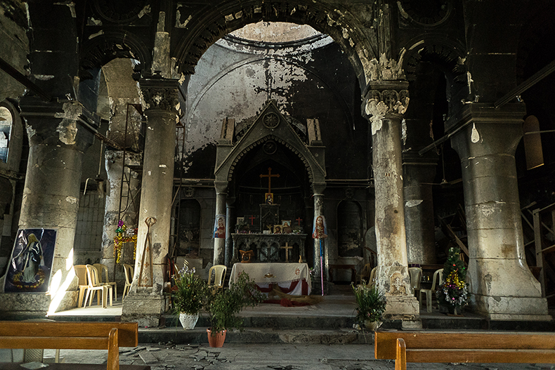 © Pascal Maguesyan / MESOPOTAMIA - Avril 2017 : la cathédrale syriaque catholique Al Tahira de Qaraqosh, incendiée et dévastée par Daech