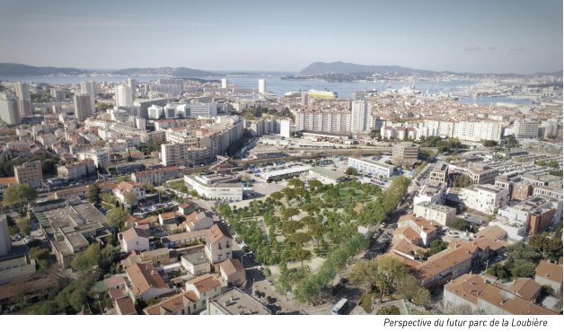 Perspective du projet. Crédit : VAD" C’est la nature qui entre en ville ". C’est par ces mots que le maire de Toulon a présenté ce jeudi ce projet : la création d’un nouveau parc paysager en lieu et place d’une friche industrielle, située dans le quartier de la Loubière, et encore partiellement occupée par Enedis et GRDF.