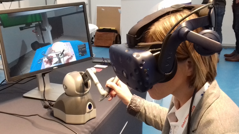 Grâce à un casque de réalité virtuelle, l’entreprise angevine Twin Medical permet à des médecins de simuler, fraise à la main, une mastoïdectomie, une délicate opération qui touche à l’os de l’intérieur de l’oreille, à partir de cas de vrais patients, dont le scanner est numérisé en 3D. « Au-delà de la formation, c’est un outil idéal pour l’entraînement et la répétition chirurgicale du geste », souligne Jérôme Esteves, le patron de Twin Medical.