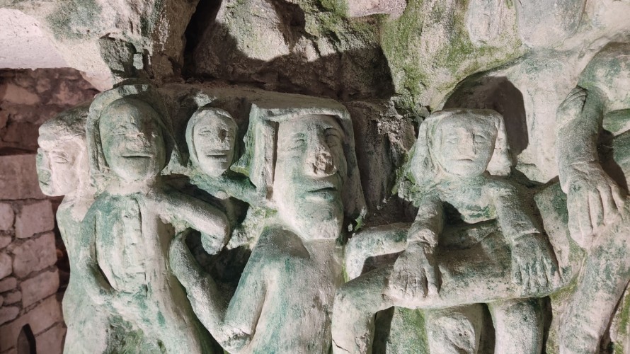 2021 RCF Anjou - Dans la cave aux sculptures de Dénezé-sous-Doué, les visages sont en train de disparaître peu à peu, victimes de l'humidité qui ronge le tuffeau.Faut-il sauver la cave aux sculptures de Dénezé-sous-Doué ? Le sujet divise les élus de cette petite commune de moins de 500 habitants. Découverte en 1956, cette cave est peuplée de centaines de personnages sculptés dans le tuffeau, dont l’origine reste mystérieuse.