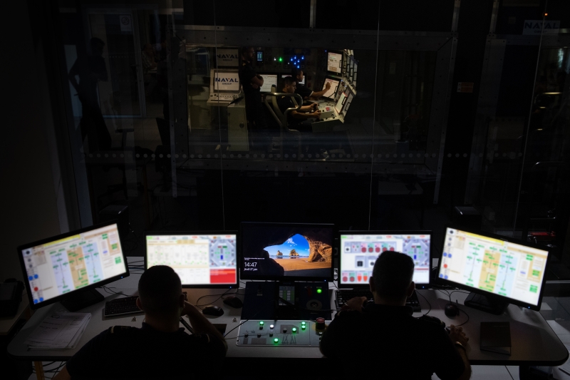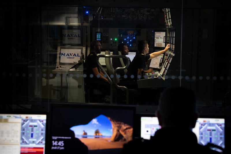 Avant les essais en mer, prévus en début d'année prochaine, l'équipage du sous-marin nucléaire d'attaque se prépare sur des simulateurs à l’école de navigation sous-marine de Toulon.