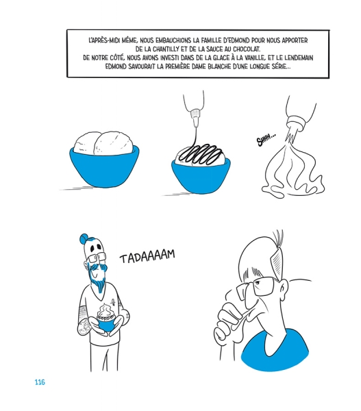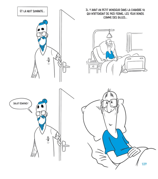 "Dans fin de vie, il y a vie", aime-t-il à dire. On le devine dans son roman graphique, le métier de Xavier est parsemé d'instants de vie. Évidemment, c'est plus de l'inquiétude et de l'anxiété que l'expression "soins palliatifs" suscite. "Mon rôle c'est de rappeler à ces personnes que la vie est toujours là et qu'une fois qu'on a maîtrisé toutes les sources d'inconfort, cette vie il est important de la cultiver jusqu'au bout." Et parfois, ça tient à peu de choses : offrir un bon dessert, partager un moment de musique, d'échange, d'écoute, de lecture, un jeu de société... "Remettre de la vie dans les chambres ça tient à peu de choses."