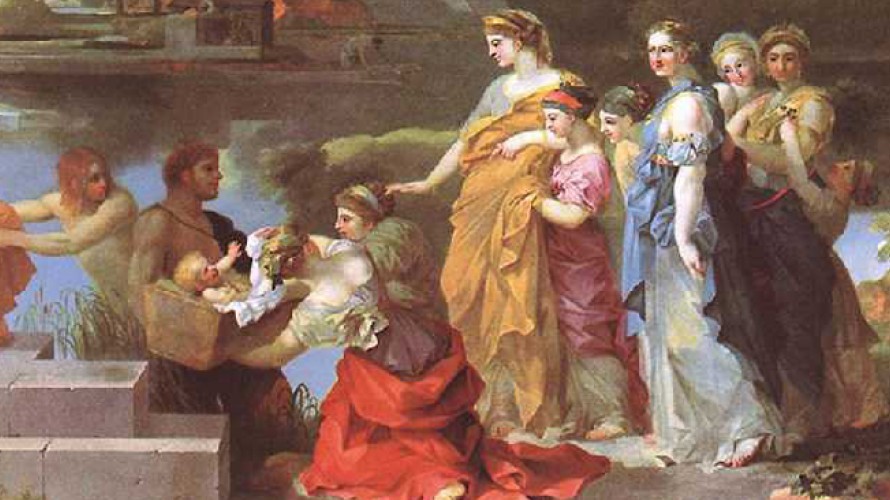 Une femme dont la Bible ne mentionne pas le nom fait tout pour sauver son bébé : elle le cache dans "une corbeille de jonc" enduite "de bitume et de goudron", dit le Livre de l'Exode. C'est alors que, de façon extraordinaire, la fille de Pharaon qui se baignait là le trouve et l'adopte. Moïse grandit avec cette "double identité" : il est égyptien par adoption mais élevé parmi les siens puisque sa nourrice est... sa propre mère !