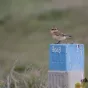 Direction Gâvres, aux marais de Kersahu à la découverte des oiseaux en pleine migration. Une balade présentée par Emmanuelle Jeudy et son guide ornithologue Mael Garré.Droits image: Un traquet motteux