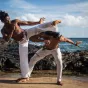 La capoeira est un art martial afro-brésilien qui aurait ses racines dans les techniques de combat des peuples africains du temps de l'esclavage au Brésil. Elle se distingue des autres arts martiaux par son côté ludique et souvent acrobatique. Les pieds sont très largement mis à contribution durant le combat bien que d'autres parties du corps puissent être employées telles que, principalement, les mains, la tête, les genoux et les coudes. Les « joueurs » peuvent prendre position en appui ou en équilibre sur les mains pour effectuer des coups de pieds ou des acrobaties. De formes diverses, la capoeira est jouée et/ou luttée à différents niveaux du sol et à différentes vitesses, accompagnée le plus souvent par des instruments, des chants et des frappements de mains.