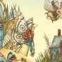 Un ver vert aux yeux vairons décide un jour de se rendre à Versailles pour y rencontrer le Roi. Hélas, ce ver commet un impair en nommant Vercingétorix celui qui se fait appeler Roi Soleil. C’est vers là que tout bascule et que l’on tente de mettre le ver vert sous les verrous… Bruno Gibert se livre dans cet album à l’un de ses passe-temps favoris, la contrainte oulipienne qui impose ici la récurrence du son " ver " dans un récit conduit par le nonsense. Le texte fait jaillir en vert les mots homophones tandis que les images, où le grotesque se déploie dans des décors soignés, proposent une partie de cache-cache entre le lecteur et le ver. Si le premier effet du livre est de nous faire rire aux dépends d’un ver idiot, il incite par ailleurs l’enfant à tenter lui-même des acrobaties sémantiques et lexicales. Une histoire désopilante où les mots sont les matériaux d’un jeu littéraire, qu'a sélectionné pour nous la librairie Récréalivres au Mans.Droits image: Le ver vert © Bruno Gibert