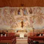 Entre vignes et oliviers dans les faubourgs de Béziers se niche un joyau religieux, Notre-Dame de Consolation au riche passé, rénové, agrandi et embelli grâce aux merveilleuses fresques de Nicolas Greschny et de son fils. Outre son architecture singulière Notre Dame de consolation mérite une visite pour admirer l’oeuvre du fresquiste ainsi que les nombreuses tombes des notables locaux.Droits image: RCF34 Hérault marial