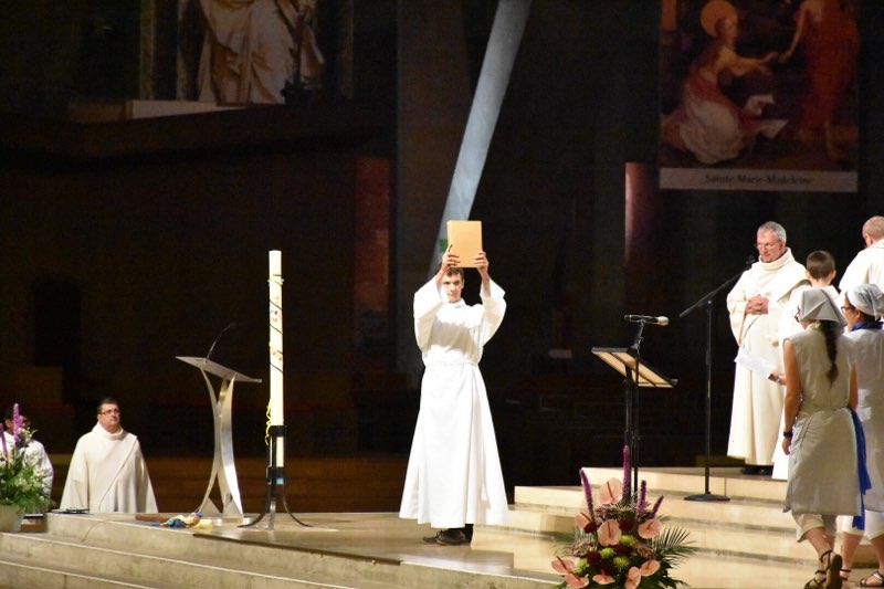 Ce lundi 30 juillet lors de la messe d'ouverture du pélerinage en la basilique Saint Pie X, Florent Boisneau s'est vu institué dans deux ministères de l'action lithurgique. Il est désormais reconnu comme "Lecteur et Acolyte". Cela signifie qu'il sera au service de la Parole et de l'Eucharistie, mais également de l'Autel. "C'est une immense joie car cela signifie que la formation avance", confie le jeune séminariste au micro de RCF Puy-de-Dôme.